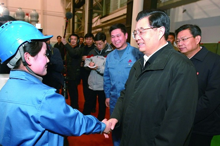 胡錦濤總書記視察西電集團與我院畢業(yè)學(xué)生親切交談