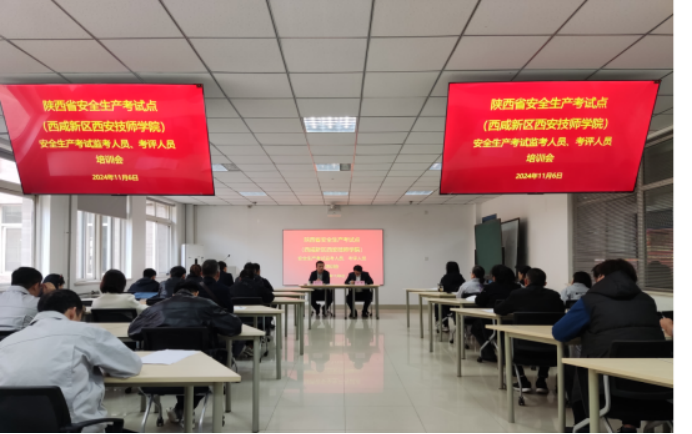 為進一步規(guī)范安全生產(chǎn)考試管理,嚴格安全生產(chǎn)考試紀律,確保西咸區(qū)域安全生產(chǎn)培訓(xùn)機構(gòu)和考試點的規(guī)范合作,扎實推動西咸新區(qū)安全生產(chǎn)考試工作高質(zhì)量發(fā)展,11月6日下午學(xué)院舉行陜西省安全生產(chǎn)考試點(西咸新區(qū)西安技師學(xué)院)安全生產(chǎn)考試監(jiān)考人員、考評人員培訓(xùn)會。學(xué)院黨委委員、副院長張大寧,培訓(xùn)中心主任王楠,工業(yè)自動化系、電氣工程系14名專業(yè)課老師,以及思啟通達、永宣安防、宏盛軍馳、華安等7家安全生產(chǎn)培訓(xùn)機構(gòu)的負責(zé)人、考評員參加了本次培訓(xùn)會。