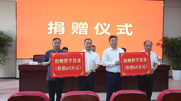 學(xué)院黨委書記、院長馮小平和陜西天益教育科技有限公司總經(jīng)理孫書陽向于田縣高級技工學(xué)校、澤普縣技工學(xué)校分別捐贈價(jià)值60萬元的教學(xué)儀器。