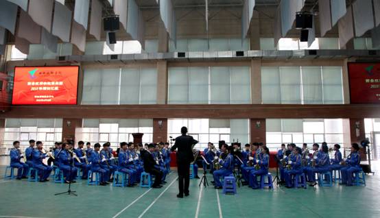 2018年6月20日下午四點,在經(jīng)過了30天集中強訓后,西安技師學院軍樂團在文體活動中心進行了強訓匯報表演,學院副院長楊廣明、部分職能部門和教學系負責人、學管及師生代表觀看了此次演出。