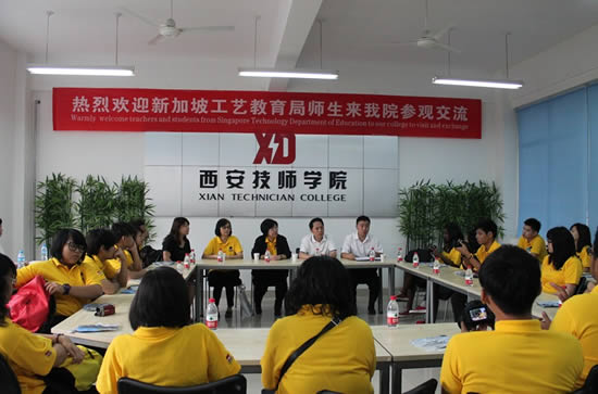 會議伊始,學(xué)院黨委副書記、副院長陸健安對新加坡來訪師生表示了熱烈歡迎,學(xué)生工作處副處長楊坤介紹了古都西安的厚重歷史和我院優(yōu)秀的辦學(xué)成果,并一一介紹了今天參加活動的10名優(yōu)秀學(xué)生。新加坡工藝教育西部學(xué)院潘老師對我院的精心安排和熱情接待表示感謝,并真誠的邀請我院師生去新加坡、去工藝教育西部學(xué)院參觀交流。接著同學(xué)們按照相近的專業(yè)進(jìn)行了友好的交流互動,他們好奇我們的學(xué)習(xí)生活方式、詢問我們從小到大的學(xué)制、了解陜西文化和我院文化的特色,由于來訪的20名學(xué)生中有一部門學(xué)生精通英漢雙語,所以溝通進(jìn)行的無比順暢,開始還有些拘謹(jǐn)?shù)奈覀?,慢慢的敞開了自己,暢所欲言。遺憾的是交流的時間總是過的那么快,依依惜別時,同學(xué)們彼此互留E-mail并在E座電子屏前合影留念。之后,在專業(yè)講解人員的帶領(lǐng)下,大家從E座到D座,參觀了我院教學(xué)實習(xí)場所,并演示了預(yù)備技師班學(xué)生的教學(xué)成果,獲得他們的聲聲贊嘆,頻頻拍照留念。
