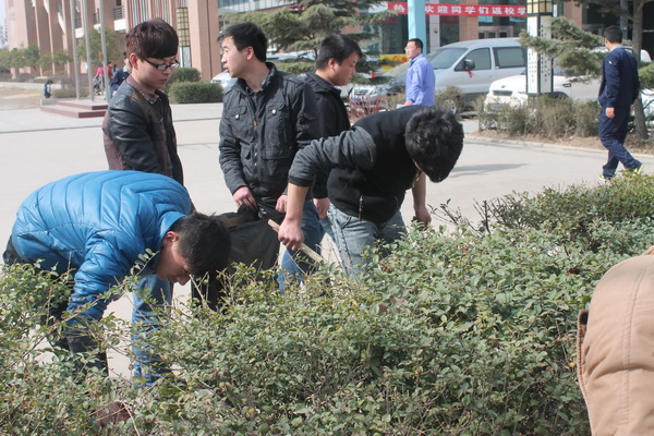 此次活動共有團(tuán)委書記、黨支部書記、系主任、各系團(tuán)干部、黨員、黨團(tuán)積極分子等200余人。在綠化校園活動過程中,各系青年志愿者充分發(fā)揮不怕苦、不怕累的精神,積極主動、分組進(jìn)行,認(rèn)真清掃校園綠化帶中的白色垃圾和磚頭瓦塊,美化、整潔了校園環(huán)境?;顒咏Y(jié)束后,由學(xué)院團(tuán)委學(xué)生會組成的宣傳小分隊的同學(xué)們將綠色宣傳標(biāo)語牌扎在校園各個綠化帶。經(jīng)過一番辛勤勞作,校園內(nèi)外各個綠化帶煥然一新。