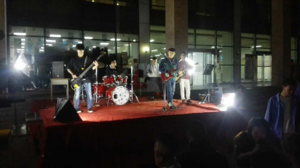 “無搖滾 不青春”,作為此次演唱會的主題,吸引了眾多學生前來觀看,演唱會還未開場之時,舞臺場地就聚集了大批期待觀看演出的同學。晚會由一段精彩的搖滾民樂開帷幕,正式開始后真可謂異彩紛呈,精彩連連?!稅垡故幨帯?、《像風一樣自由》、《讓生活繼續(xù)》如同絲絲清風吹過每位觀眾的心弦,使身心都得到放松。主唱率性灑脫的演唱與吉他手,鍵盤手、鼓手的精彩演奏完美結合,三首歌下來已經征服了全場的觀眾。