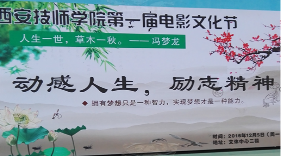 哦!原來是“西安技師學(xué)院首屆電影文化節(jié)”在此拉開序幕。本次活動(dòng)由我院電影放映隊(duì)承辦、院學(xué)生會(huì)協(xié)助,旨在豐富我校文化生活,調(diào)節(jié)同學(xué)們緊張的學(xué)習(xí)氣氛,放松心情,緩解學(xué)習(xí)壓力。活動(dòng)將維持一周,每晚都有精彩電影呈現(xiàn),具體情況如下: