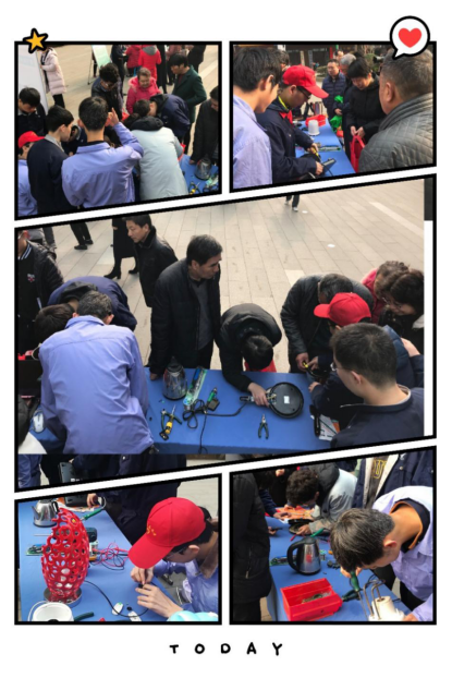 聞?dòng)嵹s來的群眾陸陸續(xù)續(xù)從家里拿來不能正常工作的電風(fēng)扇、電熱水壺、電飯煲、吹風(fēng)機(jī)等小家電。同學(xué)們認(rèn)真查找故障原因,積極處理檢測(cè)出的問題,一件件報(bào)廢的小家電在同學(xué)們的手中又獲得了“重生”。