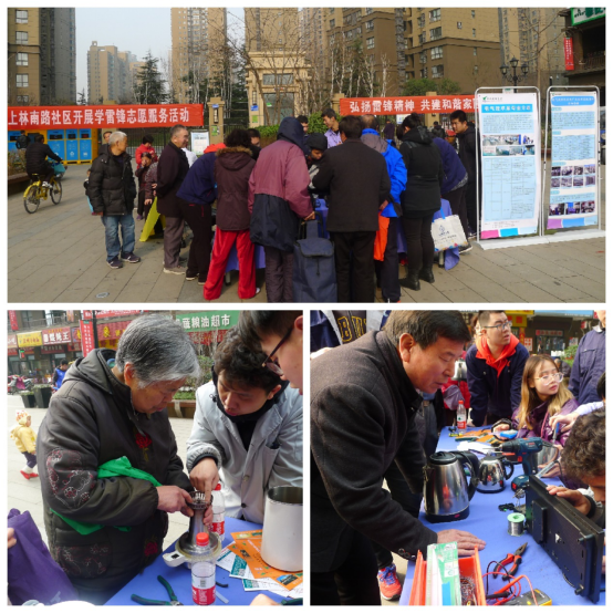 3月5日上午為了弘揚(yáng)雷鋒精神,繼承和發(fā)揚(yáng)中華民族樂于助人的傳統(tǒng)美德,電氣技術(shù)系的師生們?cè)诎讟辶钟∠髺|門廣場(chǎng)開展學(xué)雷鋒活動(dòng),利用自己所學(xué)的專業(yè)知識(shí)為群眾免費(fèi)修理小家電。