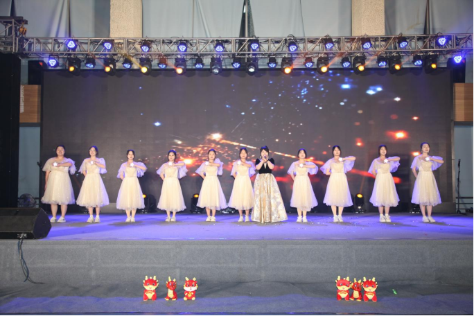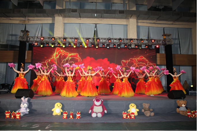 本場晚會由現(xiàn)代服務(wù)系表演的開場舞《龍騰虎躍鬧新春》拉開帷幕。