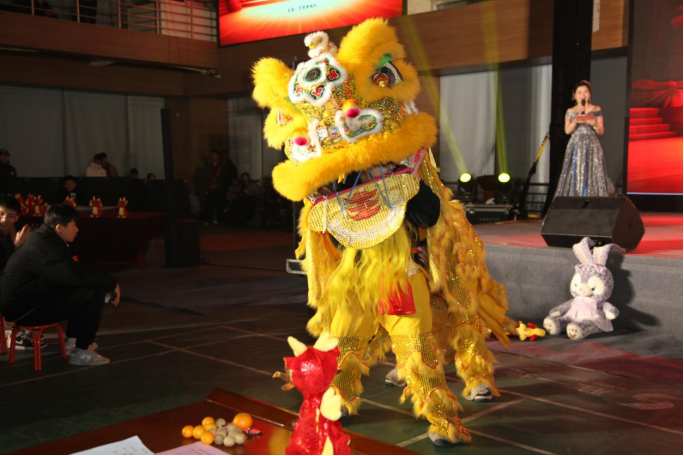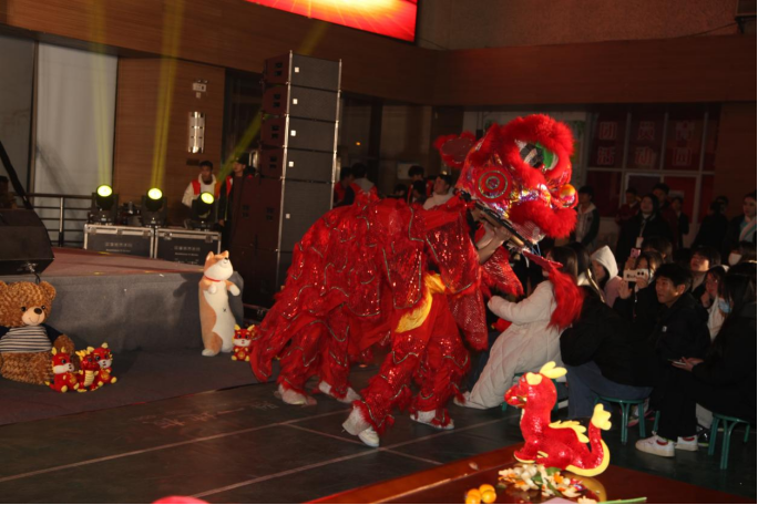 現(xiàn)代服務(wù)系的舞獅表演《雄獅迎新春》,伴隨著鏗鏘有力的鼓樂,兩只憨態(tài)可掬的“小獅子”在現(xiàn)場騰挪跳躍,贏得現(xiàn)場觀眾的滿堂喝彩。