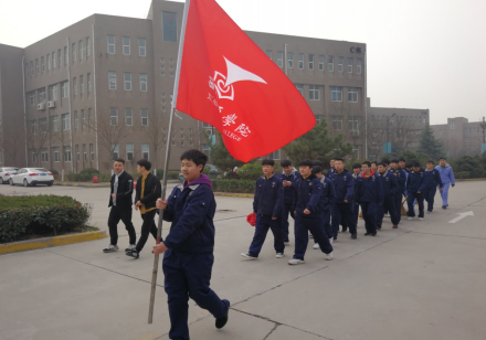 在校旗的指引下,志愿者們邁著整齊劃一的步伐,走出校園,服務(wù)社區(qū)