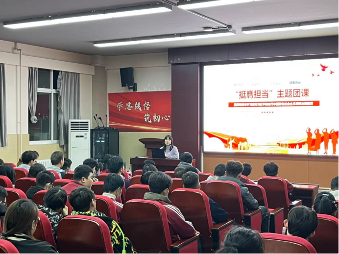 為引導(dǎo)廣大團(tuán)員青年認(rèn)真學(xué)習(xí)領(lǐng)會(huì)習(xí)近平新時(shí)代中國特色社會(huì)主義思想,扎實(shí)做好面向廣大團(tuán)員青年的主題教育,引導(dǎo)廣大團(tuán)員青年挺膺擔(dān)當(dāng)、矢志奮斗,塑造積極健康的青年文化氛圍,12月7日晚,學(xué)院團(tuán)委組織團(tuán)青代表120余人開展“挺膺擔(dān)當(dāng)”主題團(tuán)課。本次團(tuán)課由學(xué)院團(tuán)委書記蘇濤現(xiàn)場授課。