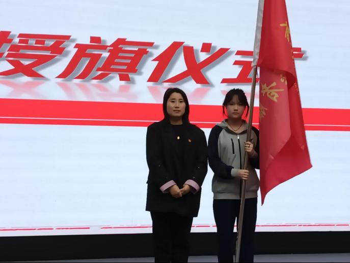 授旗儀式將活動氣氛推向高潮,學院團委書記蘇濤莊重地向志愿者團隊代表周欣婷授予青年志愿者旗幟。鮮艷的旗幟在志愿者手中高高飄揚,它不僅承載著沉甸甸的責任與使命,更象征著雷鋒精神的薪火相傳與生生不息。
