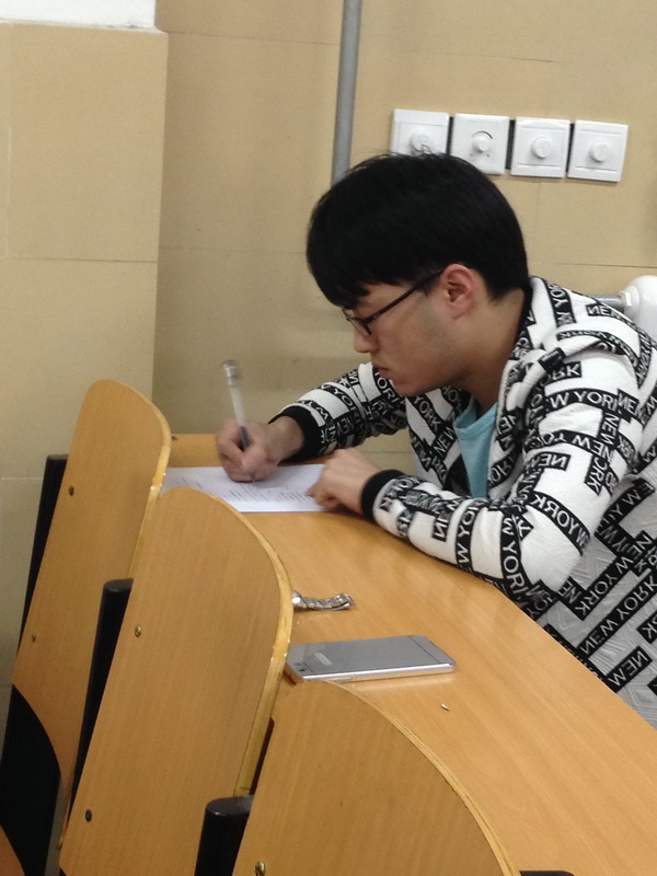 2016年4月22日下午14:30,經(jīng)過一個(gè)星期的黨課知識(shí)學(xué)習(xí),第五黨支部在C-401對(duì)本期參加培訓(xùn)的學(xué)員進(jìn)行了黨課知識(shí)考試,所有學(xué)員均按時(shí)參加,體現(xiàn)了同學(xué)們積極的思想風(fēng)貌。