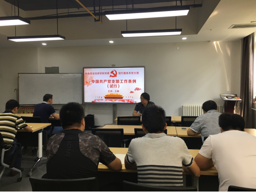 為開展好“不忘初心,牢記使命”主題教育學習研討工作,現(xiàn)代服務系黨支部于7月10日上午在智慧社區(qū)會議室組織全體黨員教師集中學習《中國共產黨支部工作條例》《中國共產黨黨員教育管理工作條例》和黃大年、張富清、鄭德榮等先進人物事跡。