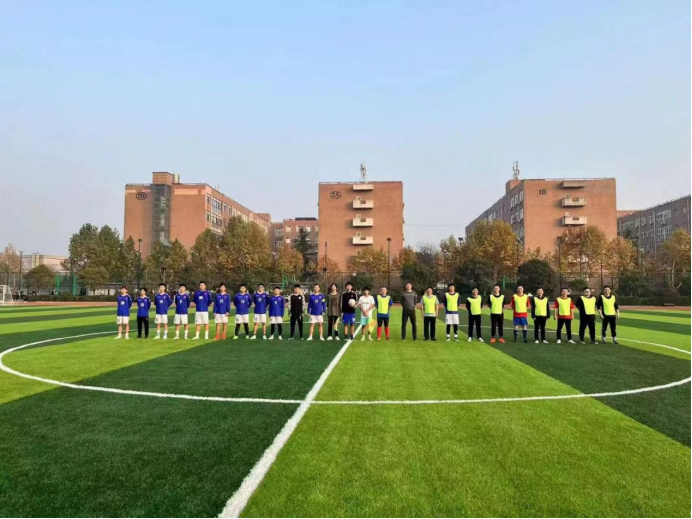 為進一步貫徹落實黨的二十大精神和習(xí)近平總書記來陜考察重要講話重要指示精神,抓好學(xué)院疫情防控和各項工作,豐富封閉管理期間師生的校園生活,增強師生戰(zhàn)勝疫情的決心,在學(xué)院黨委精心策劃、工會與團委具體組織實施下,11月16日下午,由學(xué)院副院長張大寧、院長助理、黨群紀(jì)檢處處長姚永樂率隊組建的教工足球隊與學(xué)生足球社學(xué)生在學(xué)院田徑場舉辦了“沖鋒杯”師生足球友誼賽。