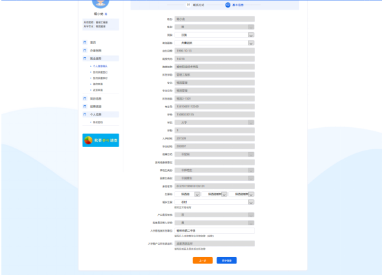 ◎首次登錄修改密碼,后點擊個人信息進(jìn)行修改,無問題進(jìn)行確認(rèn)。確認(rèn)時請注意個人信息是否正確,如有空白請?zhí)顚懻_信息。生源地名稱此項為學(xué)生中考或高考考試區(qū)域。