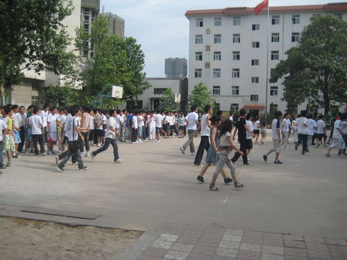 2009年6月16日下午4:00,技師學(xué)院09年度防震緊急疏散安全預(yù)案演練如期在學(xué)院總校教學(xué)區(qū)進行。