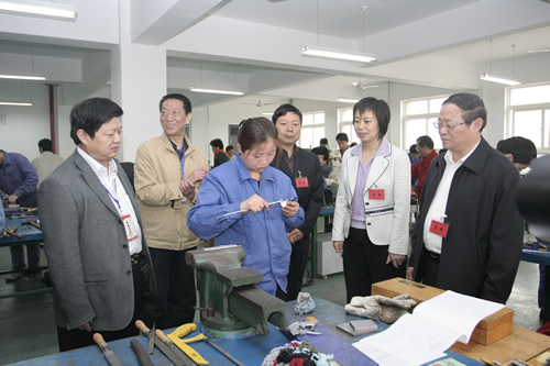 上午9時(shí)整,省總工會副主席毛新遠(yuǎn)、市總工會常務(wù)副主席白興時(shí)、市總工會副主席裴建潮、市勞動和社會保障局副局長王曉萍等領(lǐng)導(dǎo)到我院咸陽校區(qū)檢查此次比賽活動。學(xué)院副院長王德意就此次高技能人才技能大賽決賽的組織情況作了匯報(bào)。隨后,院長李長江、副院長王德意、賀惠民、紀(jì)委書記袁建章陪同省、市級領(lǐng)導(dǎo)檢查巡視了鉗工、維修電工的比賽現(xiàn)場。