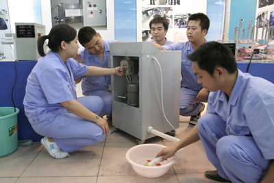 學院預備技師班畢業(yè)生正在調(diào)試自己設(shè)計制作的變頻甩干機