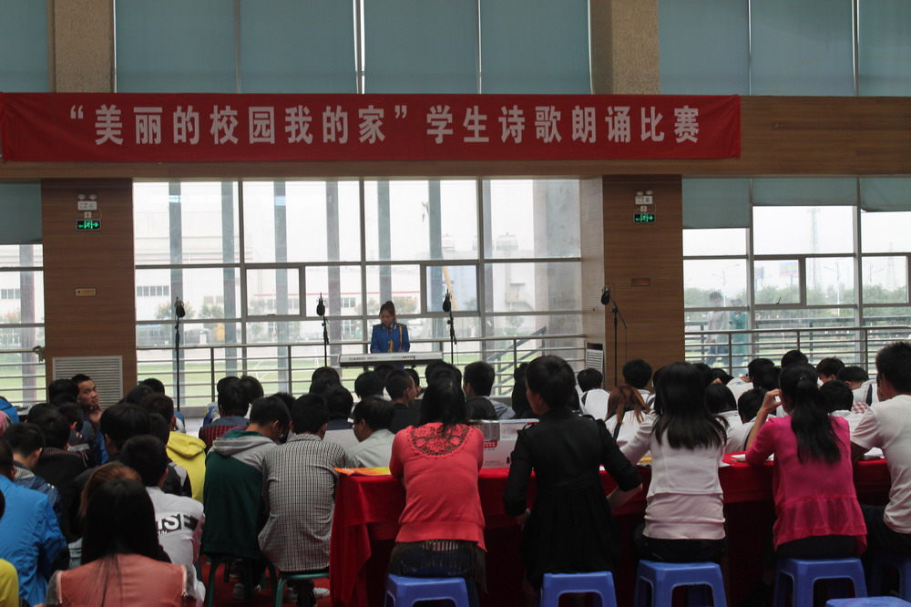為了使我院學生以昂揚的精神風貌和積極向上的學習態(tài)度在校愉快的學習與生活,進一步促進校園文化建設(shè),培養(yǎng)學生具有良好的道德觀念和職業(yè)素養(yǎng),2013年9月25日學生工作處組織開展了“美麗校園我的家”詩歌朗誦活動。