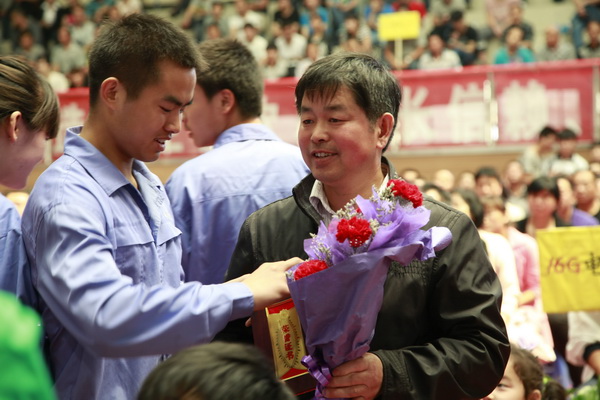 表彰會(huì)上,受表彰的學(xué)生以自己優(yōu)異的成績(jī)來(lái)回報(bào)父母,并向自己的父母獻(xiàn)花,感謝家長(zhǎng)對(duì)自己的養(yǎng)育之恩,手捧孩子送的鮮花,許多家長(zhǎng)流下了激動(dòng)和欣慰的淚水。與會(huì)家長(zhǎng)代表也上臺(tái)發(fā)言,感謝學(xué)校對(duì)孩子的栽培,并對(duì)學(xué)校的各項(xiàng)工作給予了高度的肯定和贊揚(yáng)。