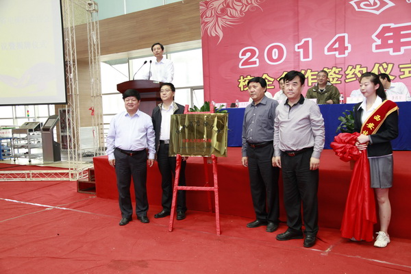簽約儀式后,陜西省人力資源和社會(huì)保障廳副廳長(zhǎng)雷寶岐、陜西省電梯行業(yè)協(xié)會(huì)會(huì)長(zhǎng)金寶,陜西省勞動(dòng)就業(yè)服務(wù)局局長(zhǎng)張延成、學(xué)院院長(zhǎng)李長(zhǎng)江共同為培訓(xùn)基地進(jìn)行揭牌。