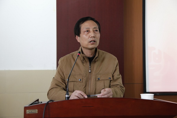 崔嵬代表學(xué)院向大會(huì)作學(xué)院2014年招生工作總結(jié)匯報(bào)