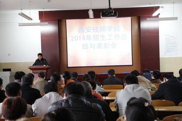 2014年12月2日下午,學(xué)院“2014年招生工作總結(jié)暨表彰大會(huì)”,在西安技師學(xué)院咸陽校區(qū)C座301室樂學(xué)堂召開。參加本次大會(huì)的有院長(zhǎng)李長(zhǎng)江、副院長(zhǎng)王德意 、紀(jì)委書記兼副院長(zhǎng)袁建章、副院長(zhǎng)趙輝以及全體教職工,大會(huì)由王德意副院長(zhǎng)主持。