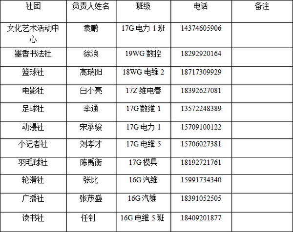 附:各學(xué)生社團(tuán)負(fù)責(zé)人名單