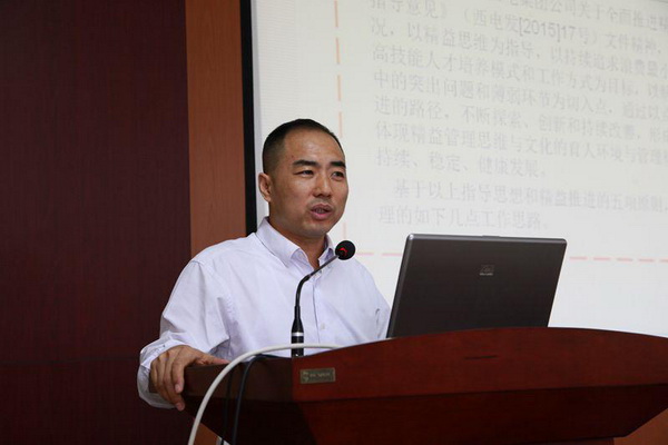 李長(zhǎng)江院長(zhǎng)做了大會(huì)動(dòng)員。他從中國(guó)企業(yè)的發(fā)展引入精益管理背景講起,分析了學(xué)院在中國(guó)西電集團(tuán)開(kāi)展精益管理活動(dòng)的作用,明確了學(xué)院在集團(tuán)精益管理中人才育成和校辦企業(yè)示范建設(shè)作用,并就用理念推進(jìn)學(xué)院精益管理,用方法提高管理水平,通過(guò)改善使全員參與,立足本崗改進(jìn)提升,成為集團(tuán)公司精益管理高效單位提出要求,希望為西電集團(tuán)培養(yǎng)出更多更好的高技能人才多作貢獻(xiàn)。