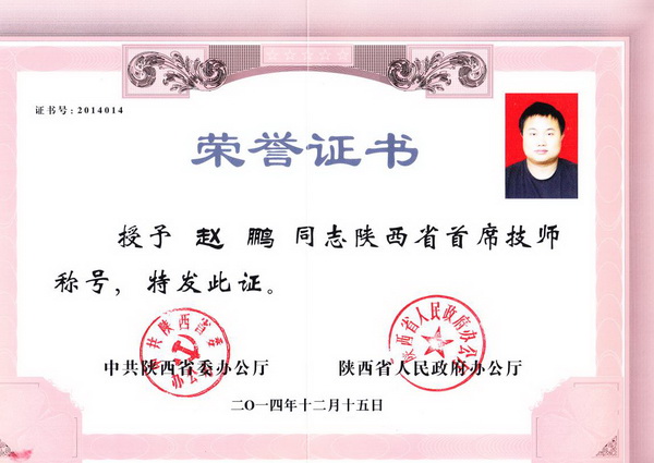 熱烈祝賀我院教師趙鵬榮獲“陜西省首席技師”光榮稱號