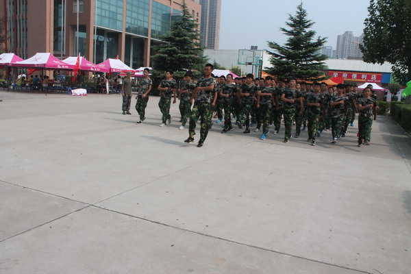 在部隊(duì)教官的親切關(guān)懷和嚴(yán)格訓(xùn)練下,短短幾天時(shí)間,齊步走、正步走、齊步變正步、解散、集合及分列式等預(yù)定訓(xùn)練科目已初見成效。教官手把手教,學(xué)生認(rèn)真的學(xué),在軍訓(xùn)隊(duì)列訓(xùn)練中,方隊(duì)整齊,精神飽滿,步伐矯健、口令準(zhǔn)確、聲音嘹亮。新生們對(duì)軍訓(xùn)都充滿了熱情和信心,紛紛表示不會(huì)辜負(fù)教官和老師們對(duì)自己的關(guān)心和期望。除了每天對(duì)學(xué)生進(jìn)行基本體能訓(xùn)練外,還進(jìn)行紀(jì)律教育、坐姿、站姿等軍人基本軍容軍紀(jì)常規(guī)教育;國防知識(shí)教育、學(xué)唱軍歌、講軍事故事、撰寫軍訓(xùn)體會(huì)等。 在這里,他們體驗(yàn)了軍營生活,進(jìn)行意志的磨煉和體能的訓(xùn)練。