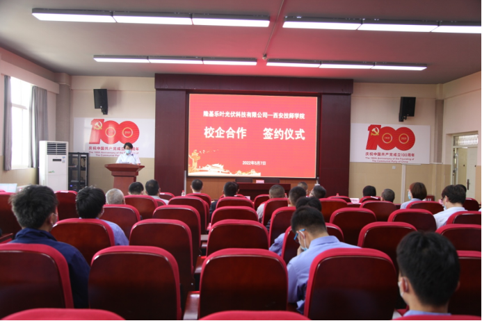 在與會領(lǐng)導(dǎo)和嘉賓的共同見證下,隆基樂葉光伏科技有限公司西安組件廠和西安技師學(xué)院簽署了校企合作協(xié)議。