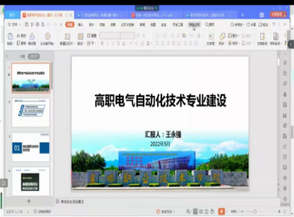 5月7日晚,電氣技術(shù)系邀請到專家組的王永強副教授通過騰訊會議為電氣技術(shù)系教師帶來《高職電氣自動化技術(shù)專業(yè)》專業(yè)建設(shè)的講座。王永強副教授來自省級示范性高職院校,是電氣自動化技術(shù)專業(yè)帶頭人、教學(xué)能手,擁有極強的專業(yè)性和教學(xué)經(jīng)驗。本次講座中王教授重點對機電一體化技術(shù)高水平專業(yè)群建設(shè)的依據(jù)和建設(shè)方案進行了說明,并對電氣自動化技術(shù)專業(yè)建設(shè)基礎(chǔ)、專業(yè)建設(shè)思路、專業(yè)人才培養(yǎng)方案修訂依據(jù)、過程及結(jié)果進行了詳細(xì)的講解。