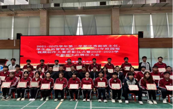 為進(jìn)一步落實(shí)立德樹人根本任務(wù),加強(qiáng)學(xué)生干部隊(duì)伍的建設(shè),充分發(fā)揮學(xué)生自治管理的作用,激勵(lì)優(yōu)秀學(xué)生群體更好的發(fā)揮榜樣帶頭作用,積極參與學(xué)生自治管理工作,2023年3月30日下午,學(xué)生管理服務(wù)中心在文體活動(dòng)中心隆重舉行2021-2022學(xué)年第二學(xué)期優(yōu)秀副班主任、學(xué)生自治管理先進(jìn)個(gè)人、校園短視頻創(chuàng)作大賽優(yōu)秀個(gè)人表彰儀式暨2022-2023學(xué)年副班主任聘任大會(huì)。