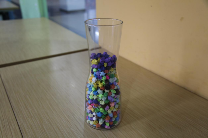 在良好的互動氛圍下,學生們進入到最后一個環(huán)節(jié)——“折星星”環(huán)節(jié)。學生們在彩色小卡紙上寫下自己想對陌生人說的話,折成星星放在玻璃罐里,每個人再隨機抽取3-6個星星,將折紙內(nèi)容分享給其他人。該項活動起到了抒發(fā)學生內(nèi)心感情,幫助學生與外界建立溝通與信任的作用。