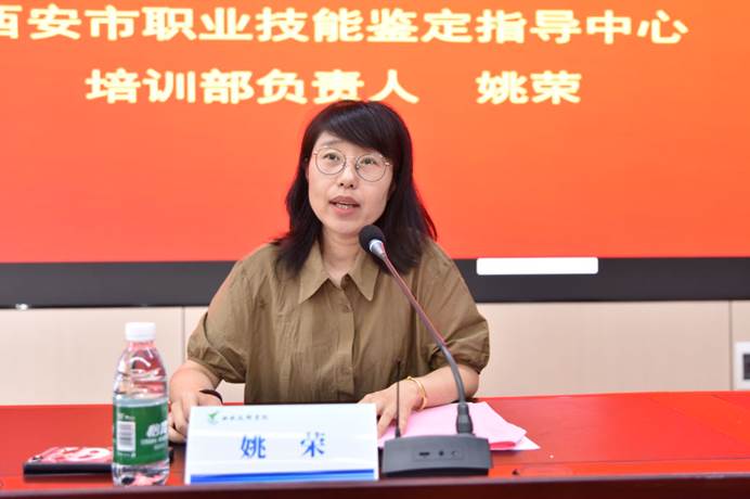西安市職業(yè)技能鑒定指導(dǎo)中心培訓部負責人姚榮針對職業(yè)培訓項目進行了政策宣講,對培訓班從開班、培訓過程以及考核給予了高度肯定。在肯定成績的同時,她也鼓勵學院今后能夠為更多的學生開展技能培訓,通過培訓,形成市場配置、政府促進、管理規(guī)范的就業(yè)形勢,有效提升就業(yè)人員的職業(yè)競爭力。