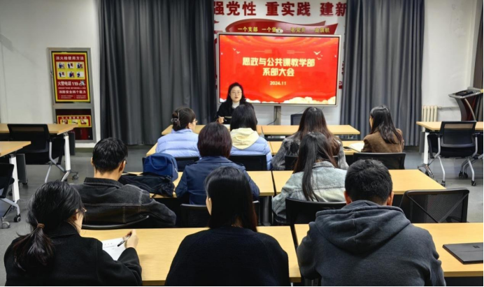 為貫徹落實(shí)學(xué)院“四系一部”體系建設(shè),推動(dòng)系部改組和后八周教學(xué)教研等工作的平穩(wěn)進(jìn)行,11月4日,思政與公共課教學(xué)部召開(kāi)首次系部大會(huì)。會(huì)議由思政與公共課教學(xué)部副主任韓璟主持,系部全體教師參加了本次會(huì)議。