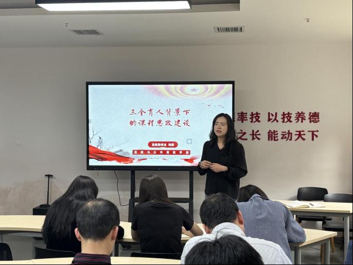 思政教研室主任劉薇解讀了《高等學(xué)校課程思政建設(shè)指導(dǎo)綱要》,結(jié)合學(xué)院人才培養(yǎng)目標(biāo),表示課程思政絕非簡單“課程 + 思政”,而是要在專業(yè)教學(xué)中自然融入家國情懷、職業(yè)精神等元素,讓課堂成為鑄魂主陣地。她強(qiáng)調(diào),教師應(yīng)兼具“經(jīng)師”“人師”雙重角色,以“如鹽化水” 的方式將思政教育貫穿教學(xué)全程。