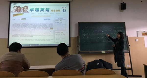 陳宏茹老師在講“非謂語(yǔ)動(dòng)詞的用法和翻譯”。長(zhǎng)句翻譯一直是學(xué)生們頭疼的問(wèn)題,陳老師用她扎實(shí)、嫻熟的專業(yè)功底講解了長(zhǎng)句翻譯技巧,使復(fù)雜的句型分析一目了然。
