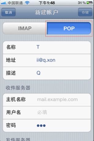 八、iPhone雖然默認(rèn)的鑒定方式是“密碼”,但是實(shí)際上系統(tǒng)中使用apop方式,所以一般用戶設(shè)定好以后無法使用,可以先改變一種鑒定方式(如MD5等)并確定,再選回“密碼”方式,此時(shí)的iPhone就可以正常使用了。